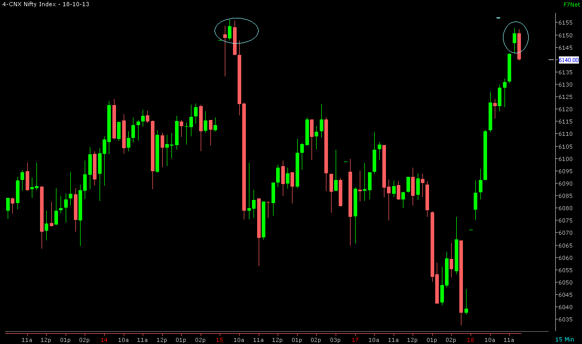 2. Now at 6142 again we observed spinning top on nifty on 15 min time frame which is indicating that bull may loose control .
